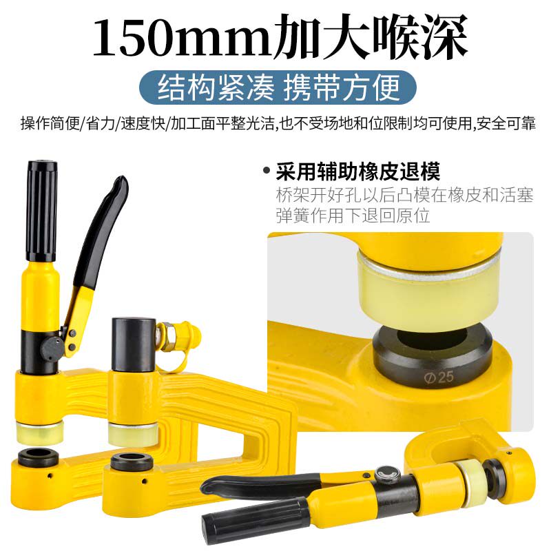 Electric box free punching drill portable hydraulic drill manual labor-saving wire groove long throat deep bridge punching machine