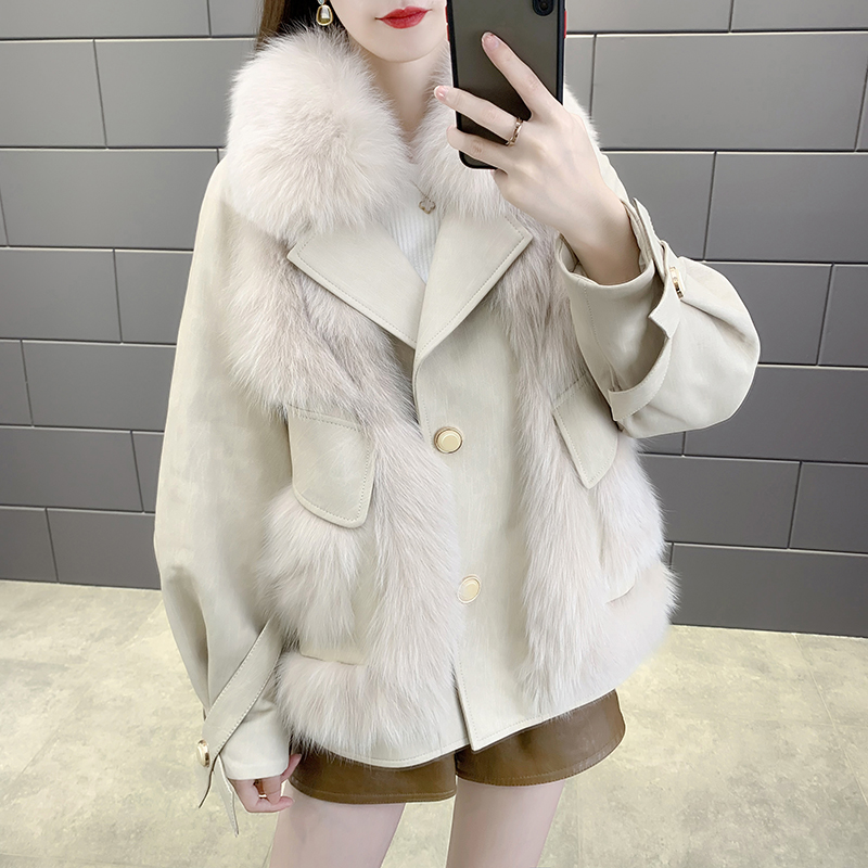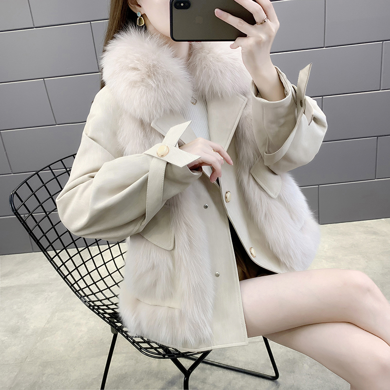 Fox fur coat women 2022 winter new young style Haining sheepskin genuine leather leather coat short down jacket