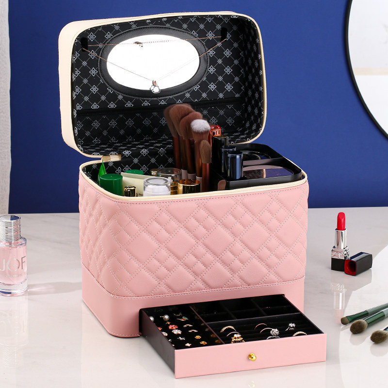 2021 new large capacity makeup bag portable waterproof travel skin-care products storage box home dust box ins women