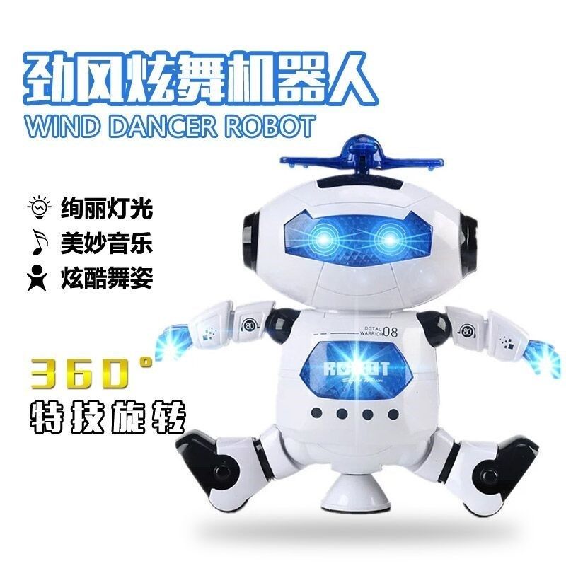 A powerful wind dancer sings and dances an electric robot 360 degrees rotating lighting music toy gift