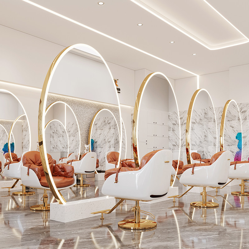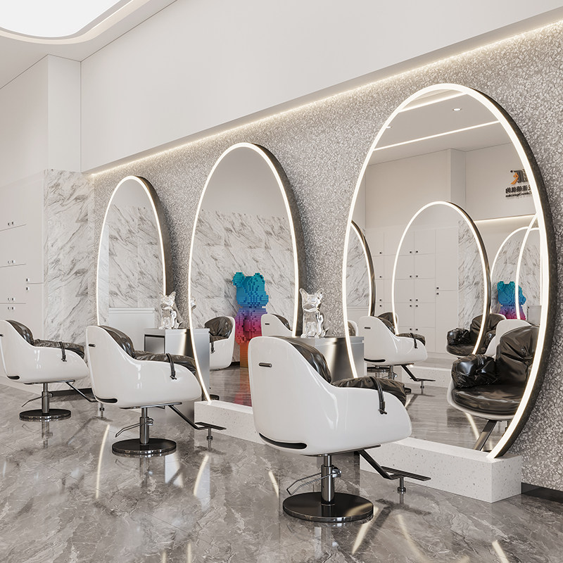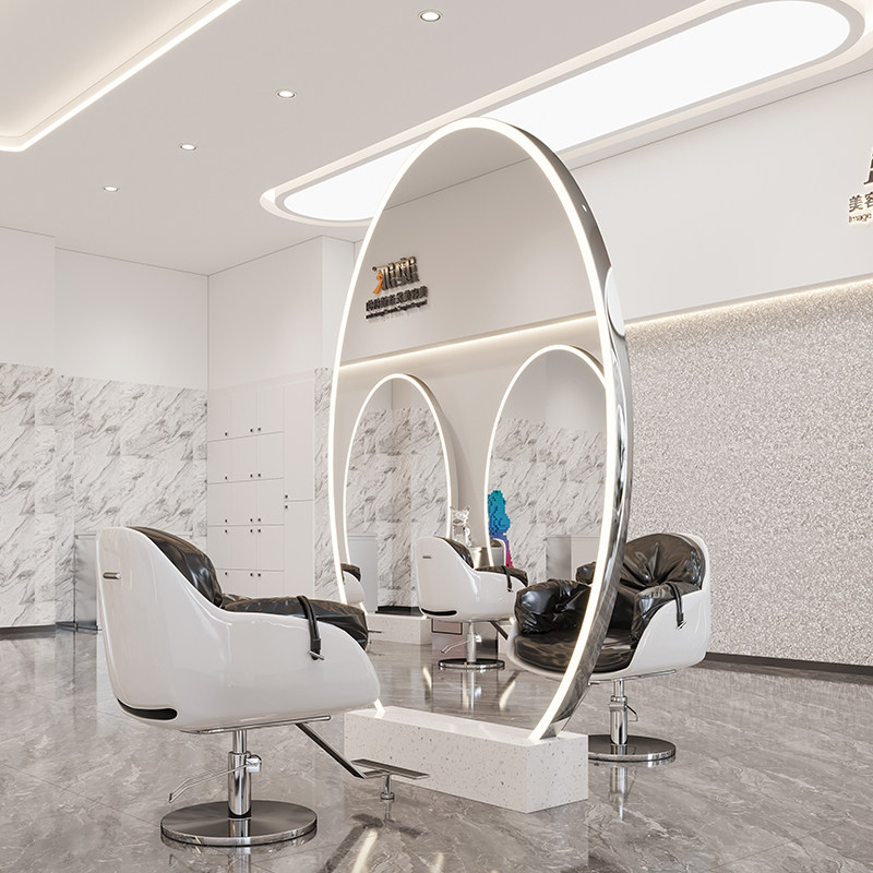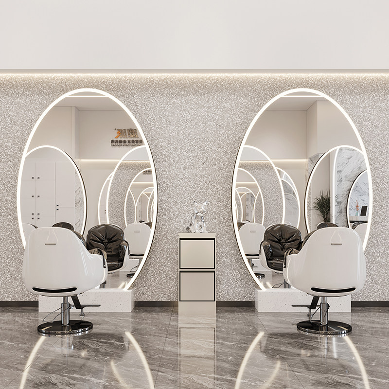 Trendy style hairdressing mirror table hair salon dedicated net red barber shop single and double-sided mirror table with lamp floor-to-ceiling styling hair cutting mirror