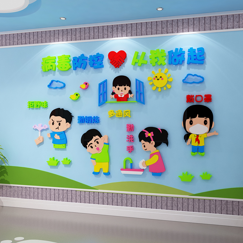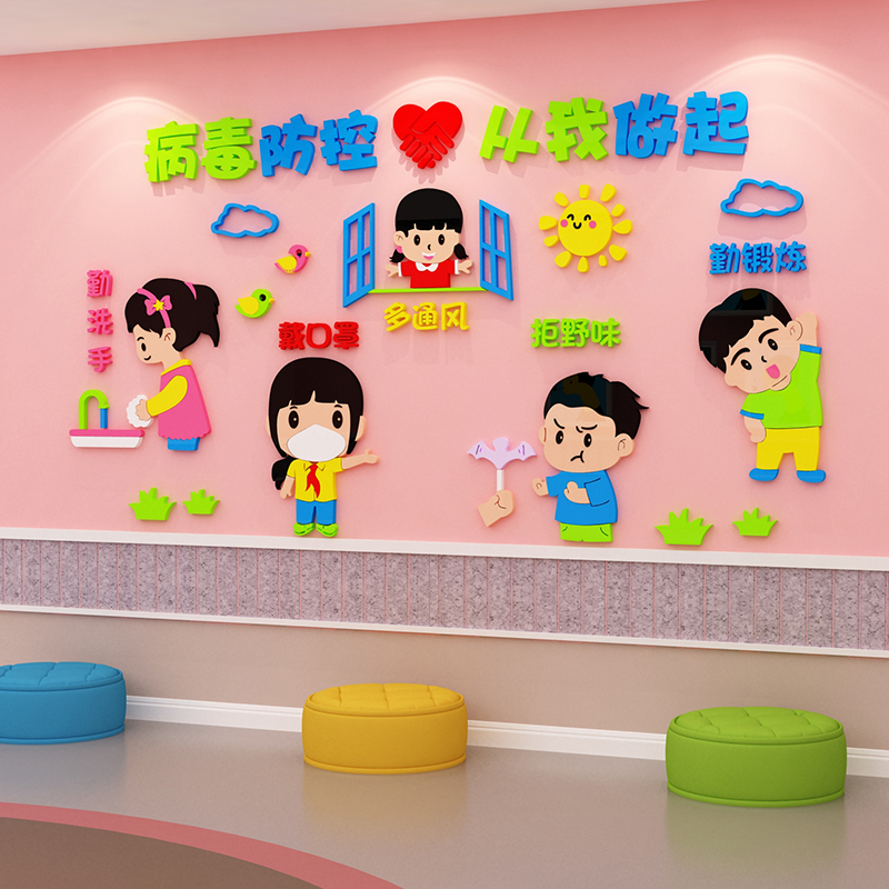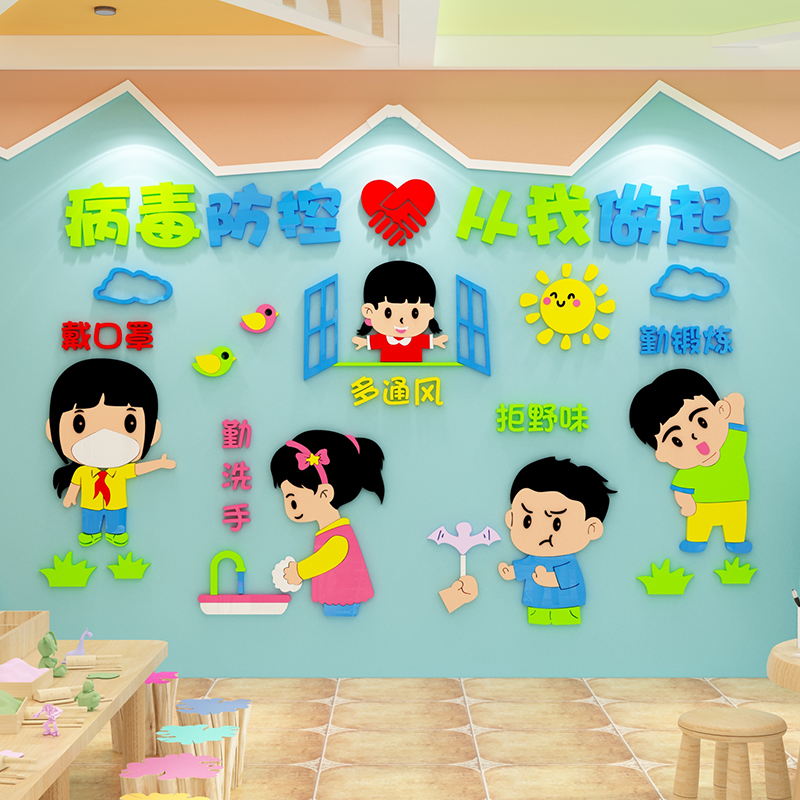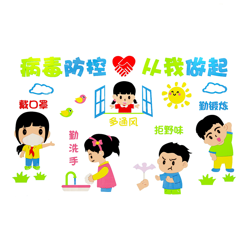 Kindergarten wall decoration environment creation and layout materials cultural theme finished product epidemic prevention and control publicity sticker painting