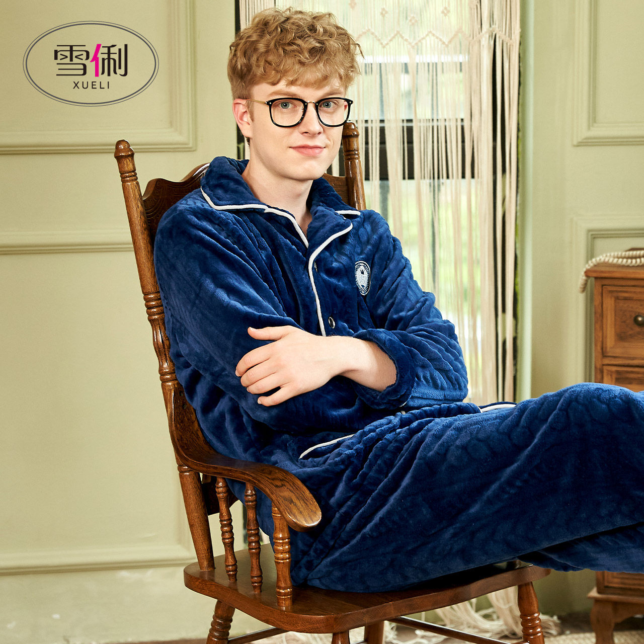Snow Li autumn winter coral fleece pajamas men winter thickened flannel winter new set spring and autumn men's loungewear