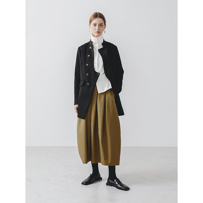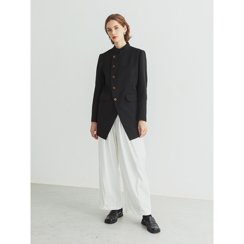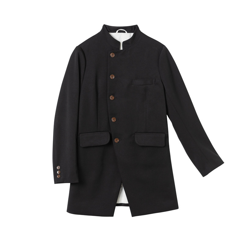 Slow tea new Chinese style oblique open collar stand collar slim suit women's 2022 autumn and winter temperament black mid-length wool coat