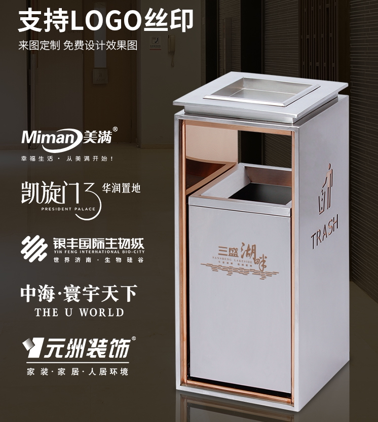 Indoor Outer Stainless Steel Eurostyle Minimalist Modern Sorting Trash Can Lobby District Elevator Port Luxury version Fruit Pot Box-Taobao