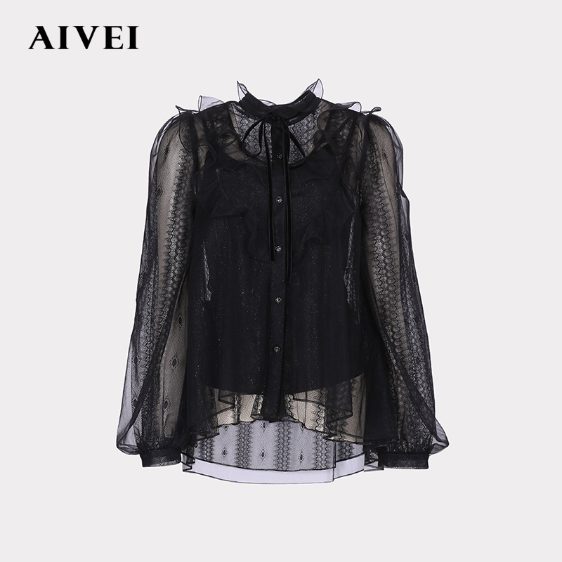 AIVEI Xinhe Ai Weichun Shopping mall Tongan Agaric Side Temperament Lace Shirt Two Sets of N71A0806