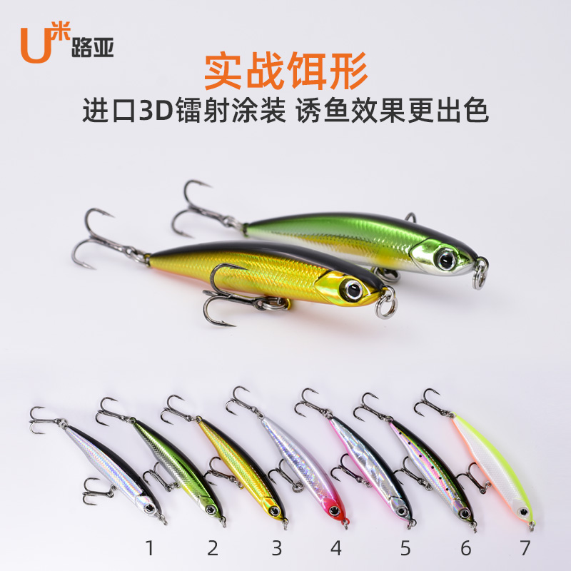 Small Silver Fish Sink Water Pencil Flutter Ultra Far Throw Lujah False Bait Slow Down Micro-Matter Freshwater Sea Fishing With Fish Teething Mouth Kill