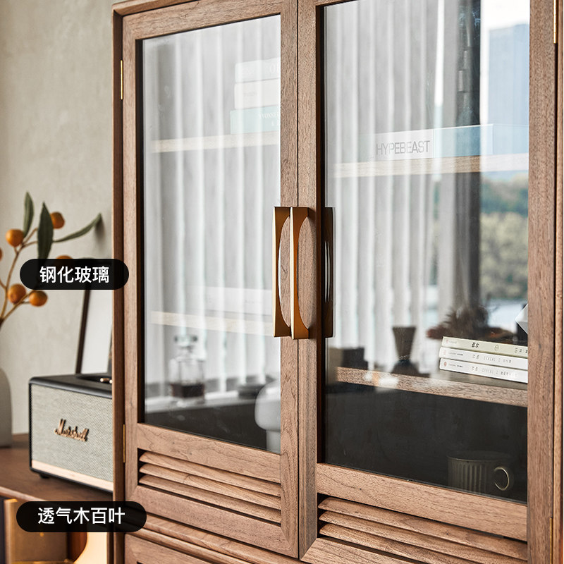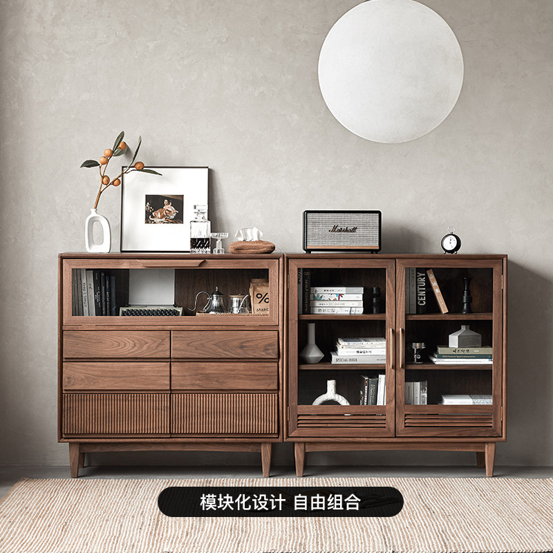 Pu Su wood multi-combination bookcase solid wood black walnut floor-to-ceiling glass door storage storage display cabinet