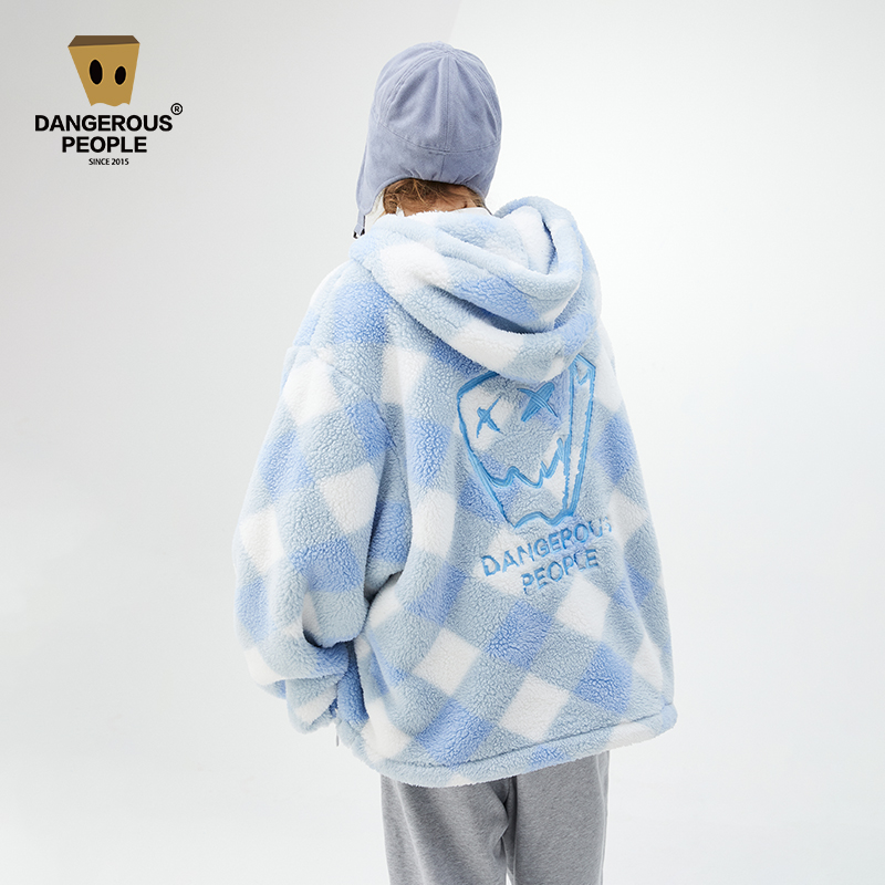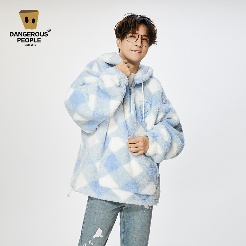 Dangerouspeople Xue Zhiqian dsp plaid cashmere tide half zipper autumn winter thick hooded coat for men and women