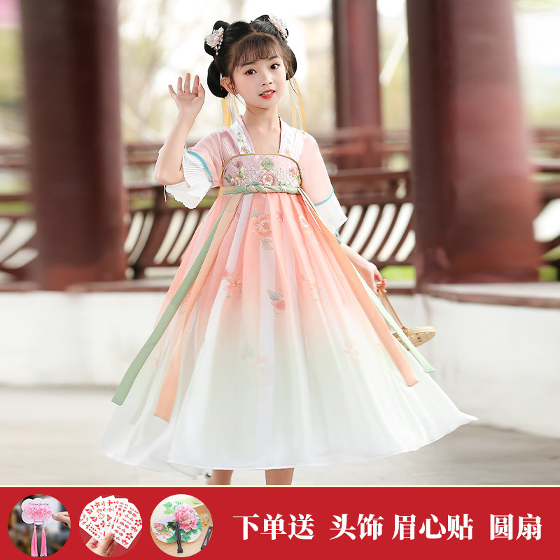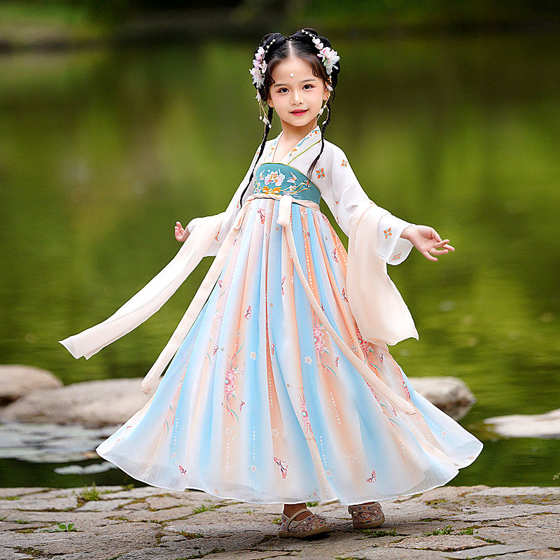 Hanfu Girls Down with dress jacket China Wind China Children's ancient clothes Superfairy little girl Liandress The autumn acting out of the dress-Taobao
