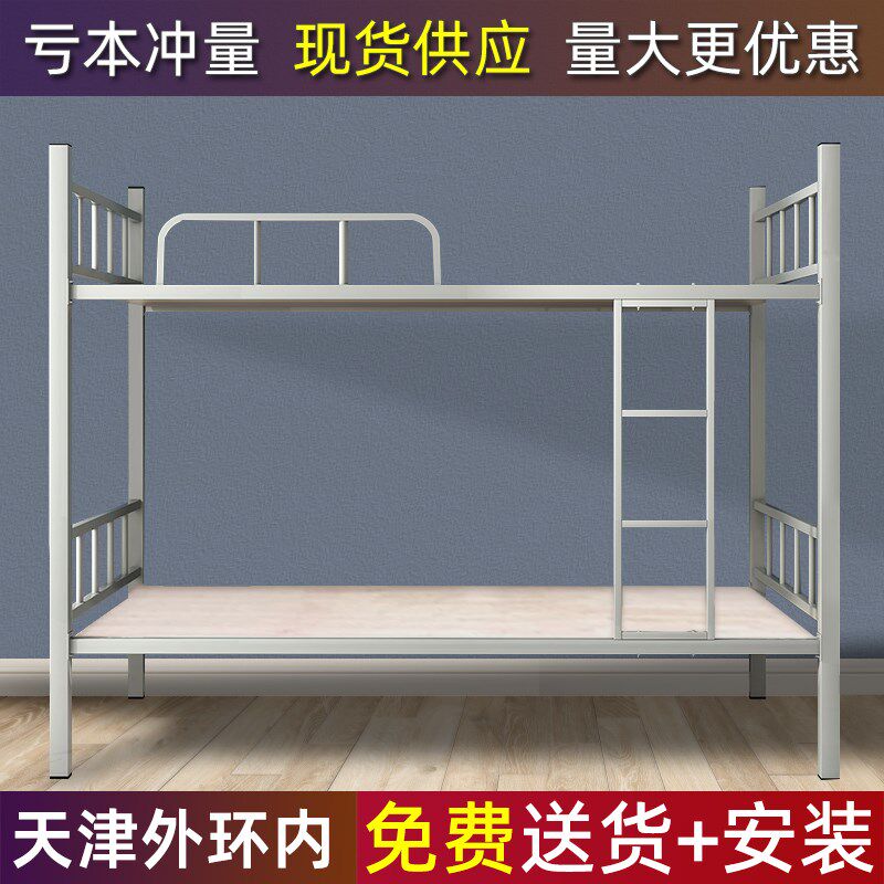 Students upload and down iron frame bed Staff dormitory high and low iron bed double layer steel wood frame bed