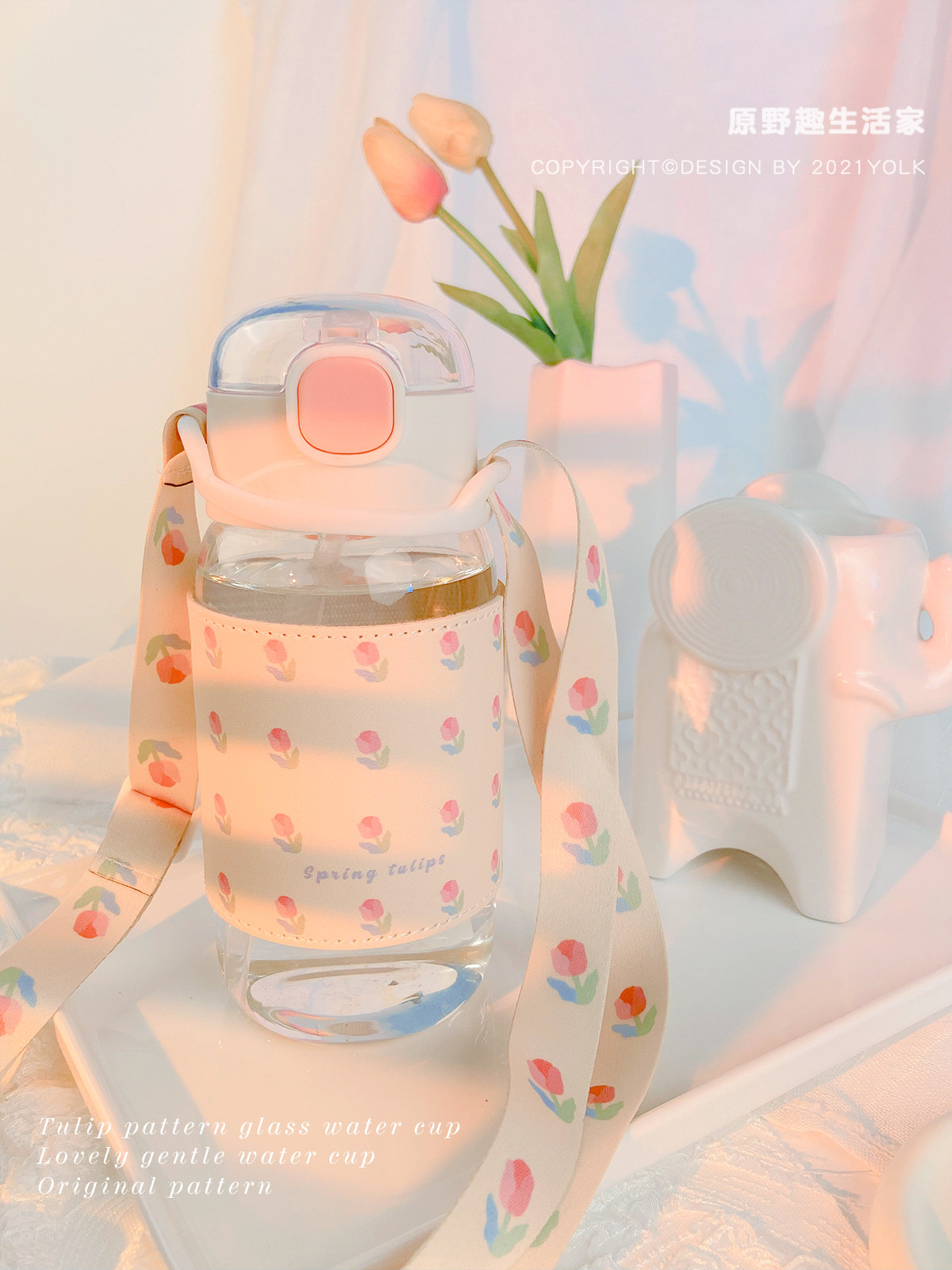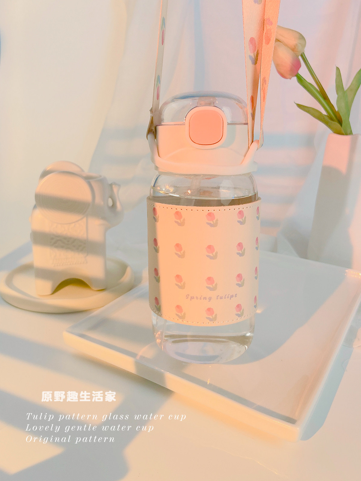 Original Wild Anecdote Living Home Original Milk Yellow Tulip Cups Glass Straw Cup Insulation Portable 450ml cute ins