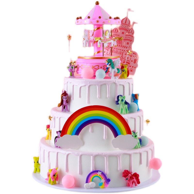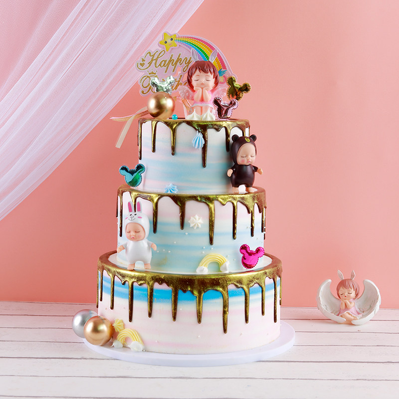 Three layers of net red cartoon rainbow horse sleep baby children's cake model simulation 2021 new plastic birthday