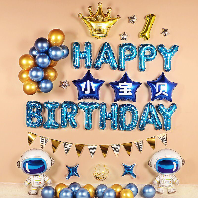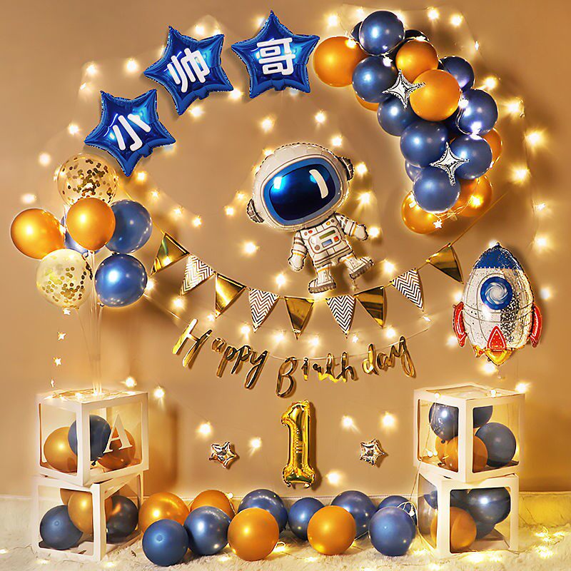 Astronaut theme baby birthday party background wall boy children one-year-old balloon decorations scene layout