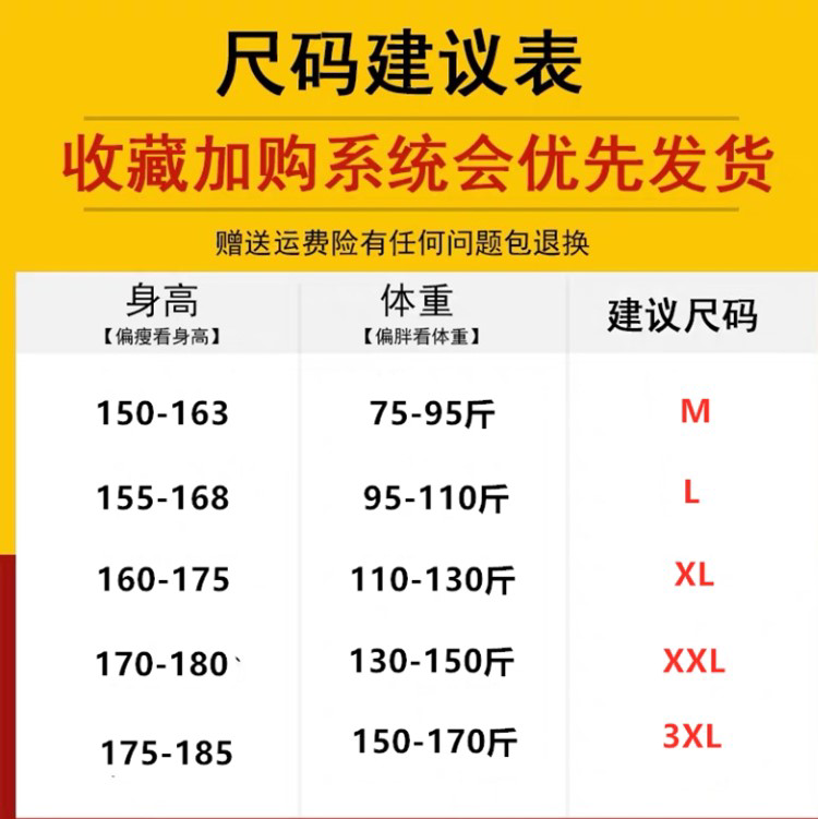 160 M (75-95 kg) 165 L (95-110 kg) 170 XL (110-130 kg) 175 2XL (130-150 kg)