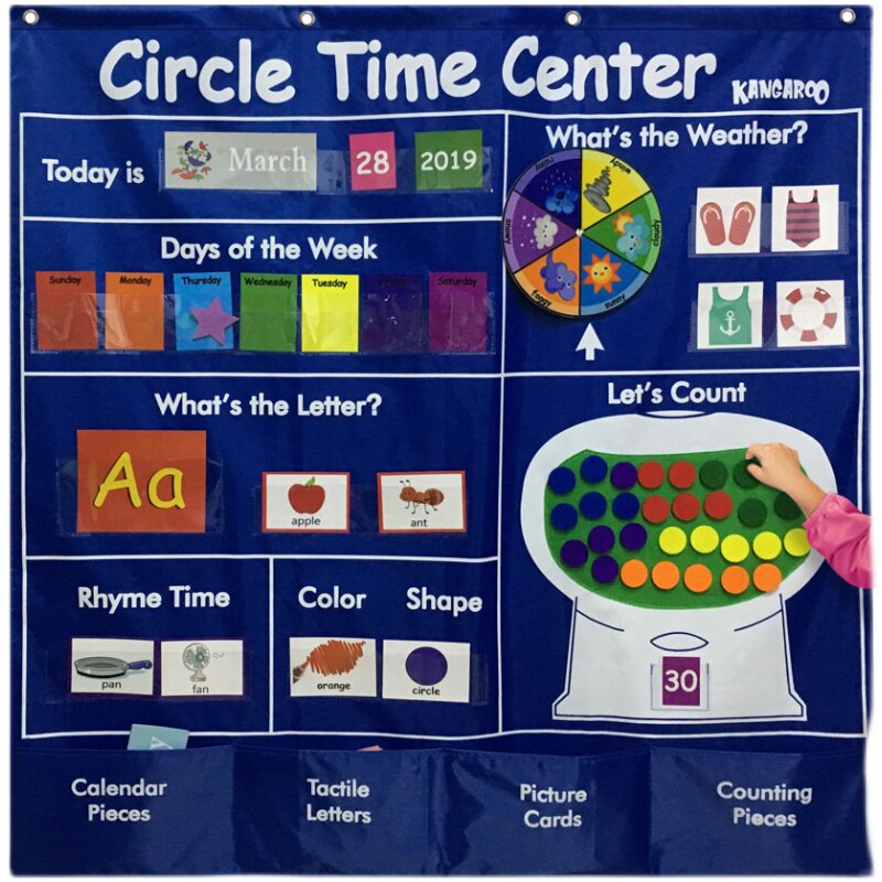 English learning hanging bag ring creating puzzle self-discipline early education cognitive wall chart large calendar weather set kindergarten children