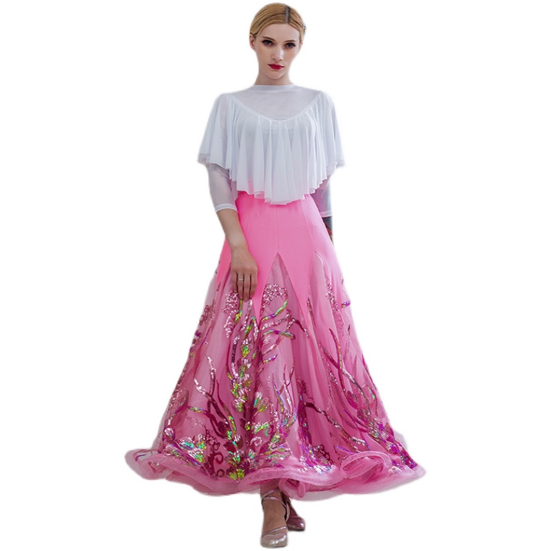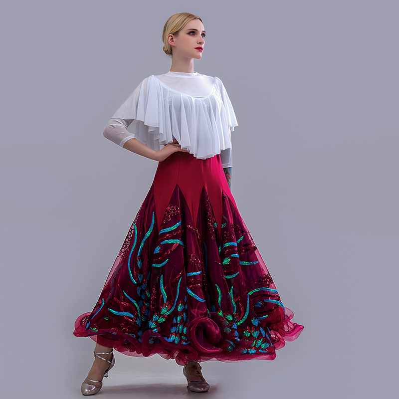 Peng Yue Dance 2022 Summer New Embroidered Dancing Skirt Bright Sheet Social Dance Half Body Dress Waltz Big Swing Long Dress