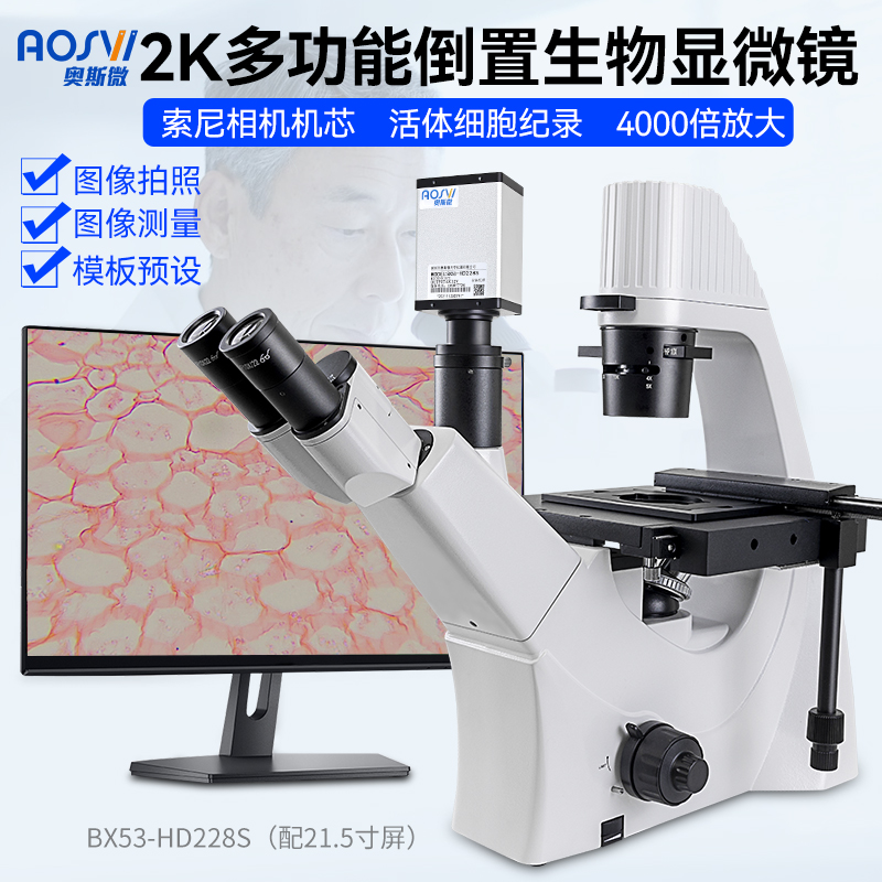 Osmicro multifunctional inverted display biological micromirror 400 times cultured petri cell research grade dyeing sample 4K image output photo-video measurement