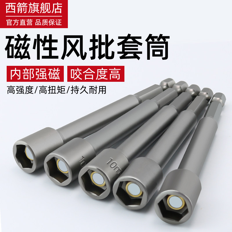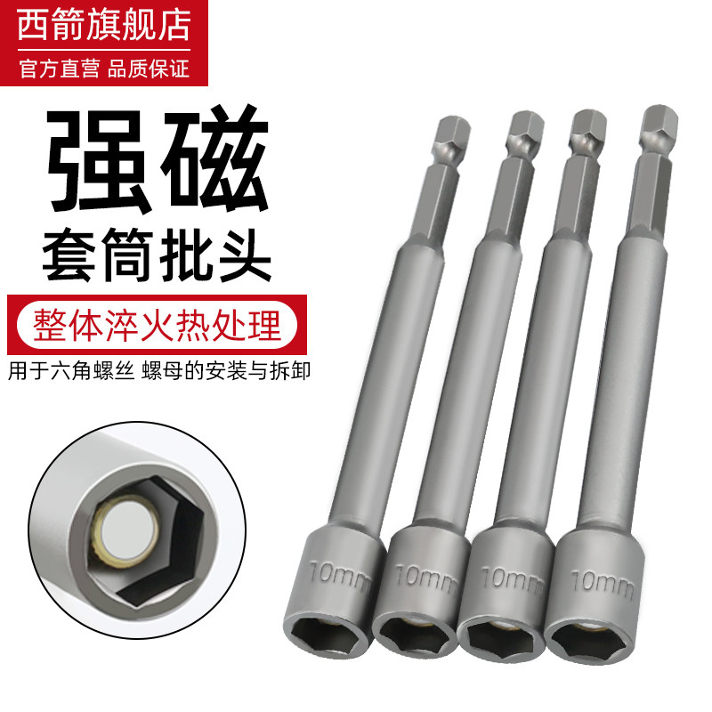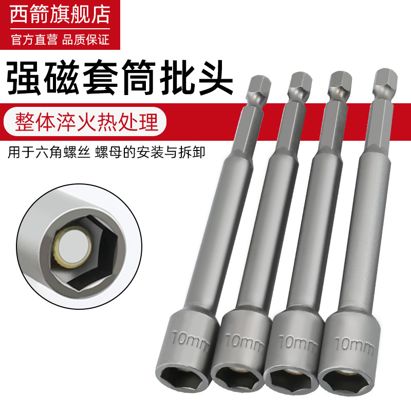 Electric screwdrivers sleeve magnetic lengthened pneumatic screwdrivers sleeve head electric drill 8mm deepens batch head color steel tile self-tapping screw