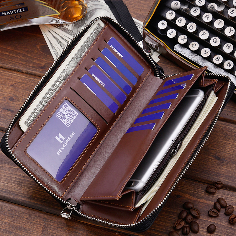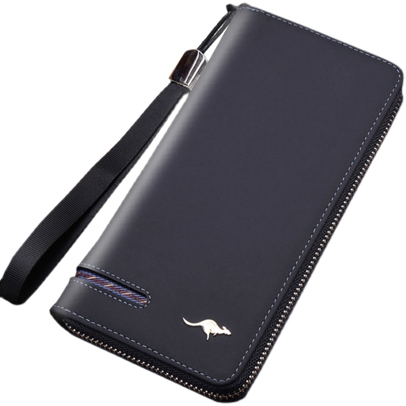Deli Kangaroo new men's long wallet zipper wallet soft handbag business clutch casual clutch bag tide