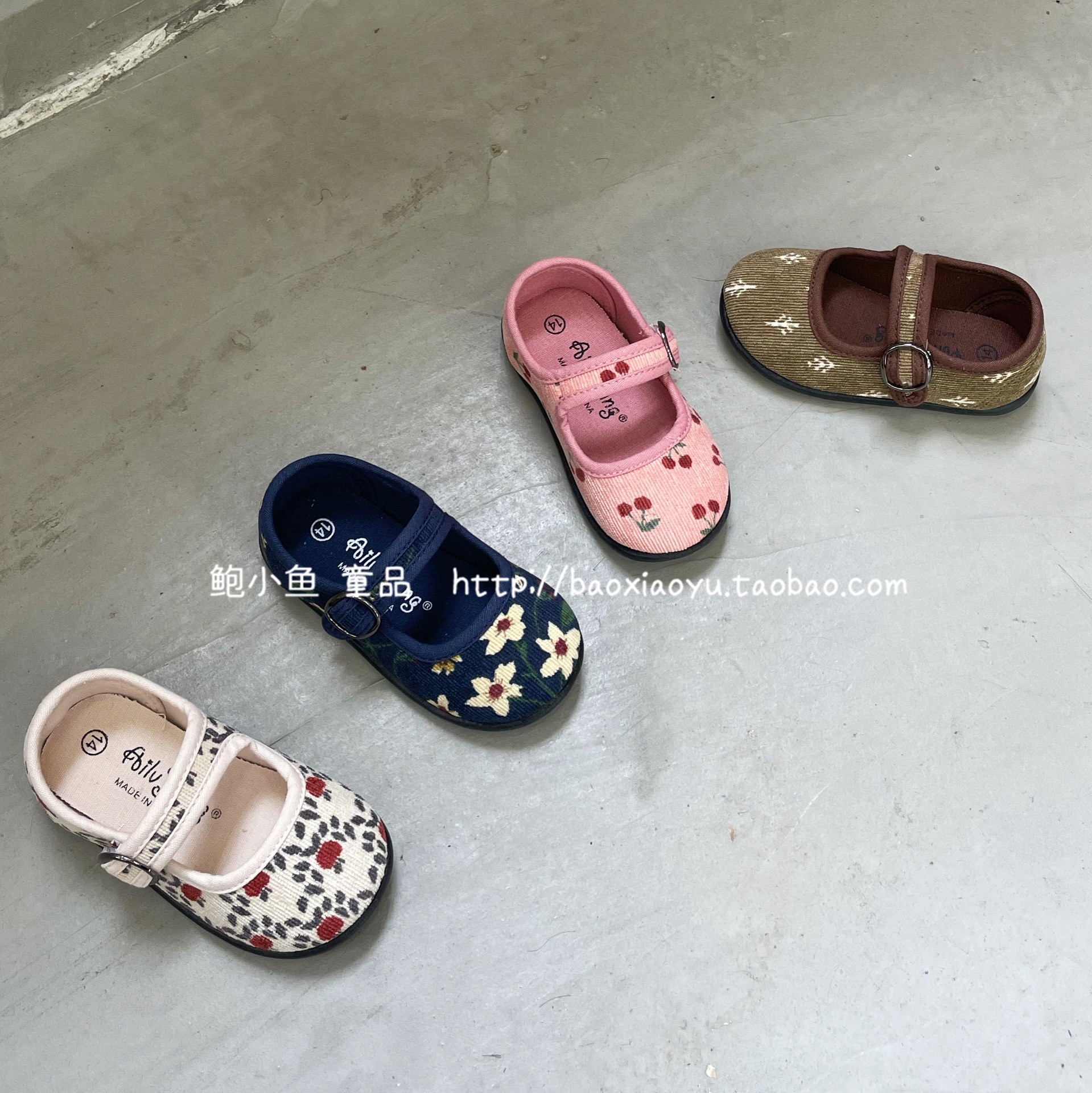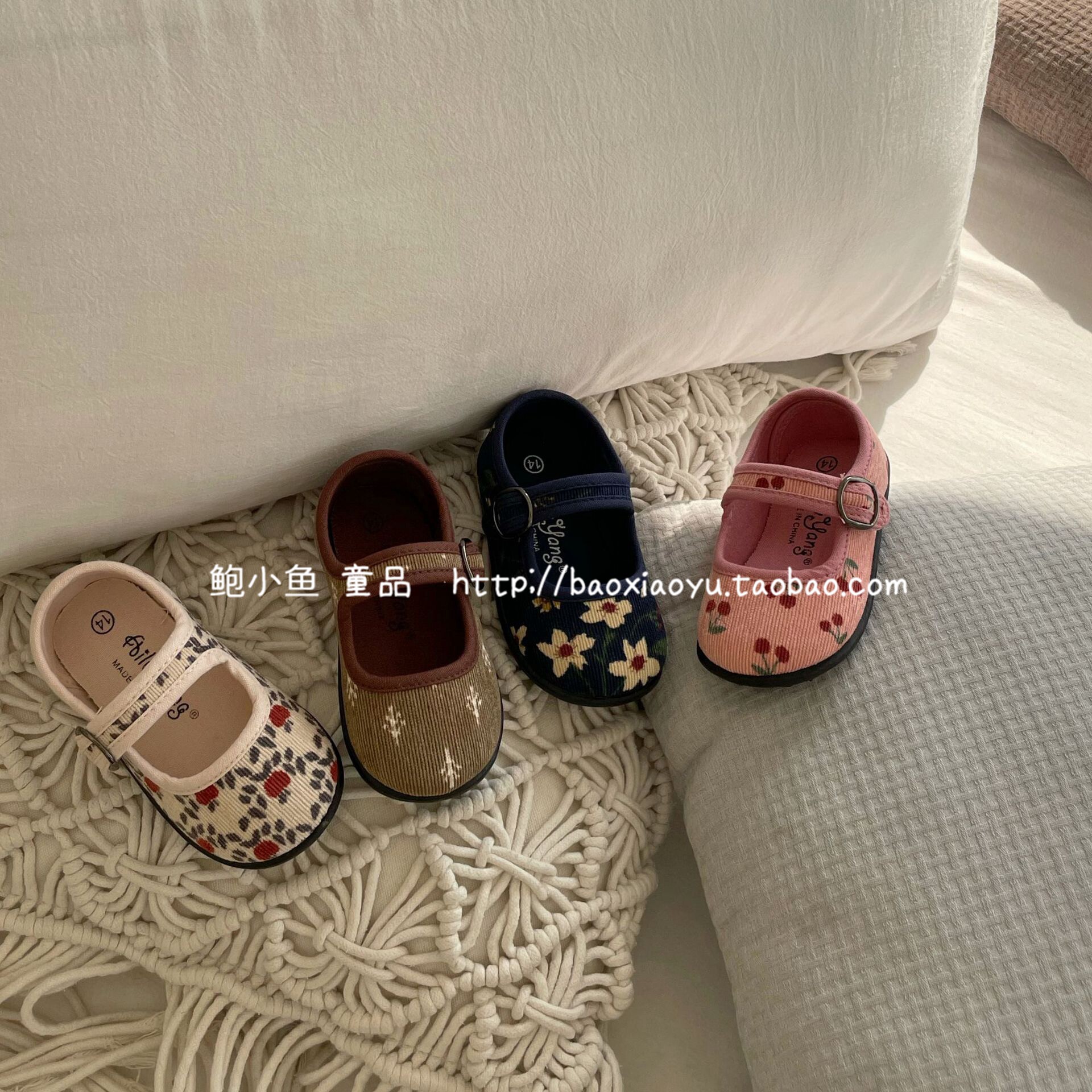2022 autumn new girls retro forest series literary corduroy floral fabric canvas shoes single shoes princess shoes