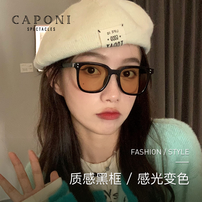 gm black box anti-blue light anti-radiation vegan glasses female net red flat light change tea colour myopia eye frame male and Korean version tide