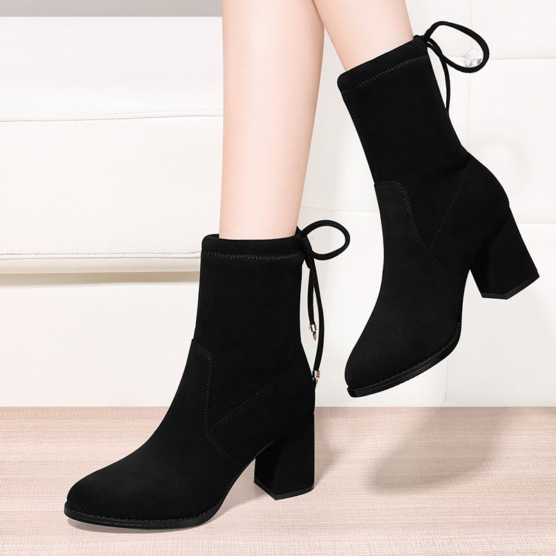 Socks Boots Woman Spring Autumn High Heels Heels 2021 New Fashion 100 Hitch Black Suede Black Suede Stretch Slim Boots