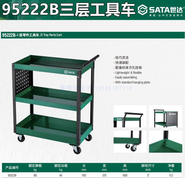 95222A three-tier tool car 95222B triple layer tool car P95222A-10 castors 4