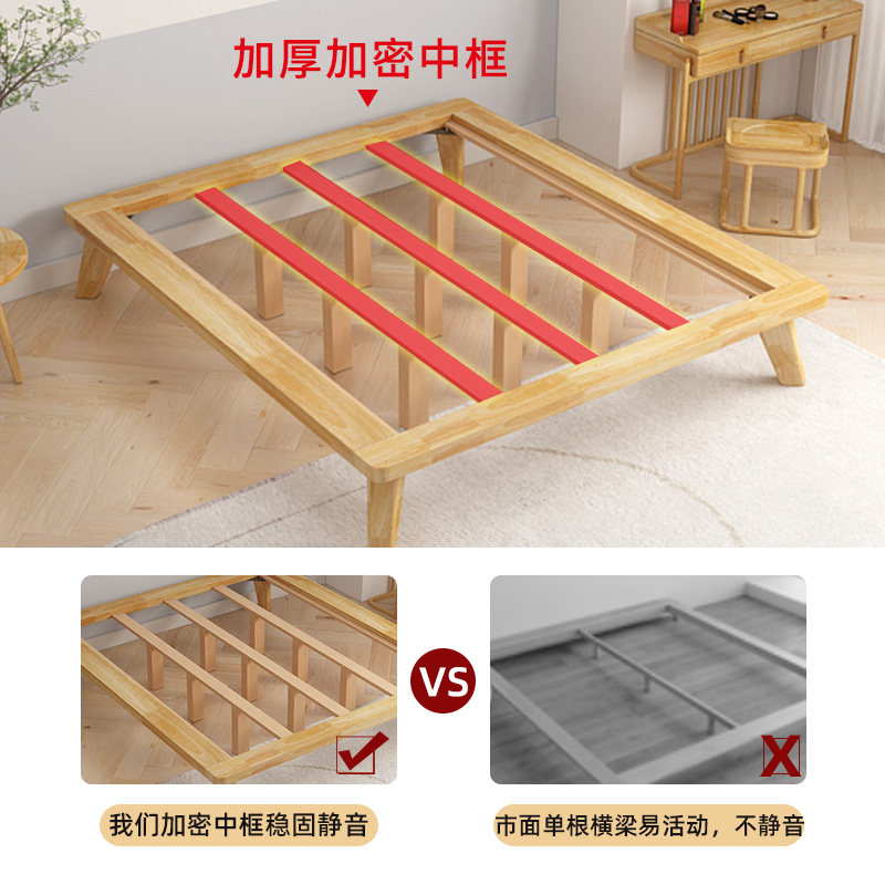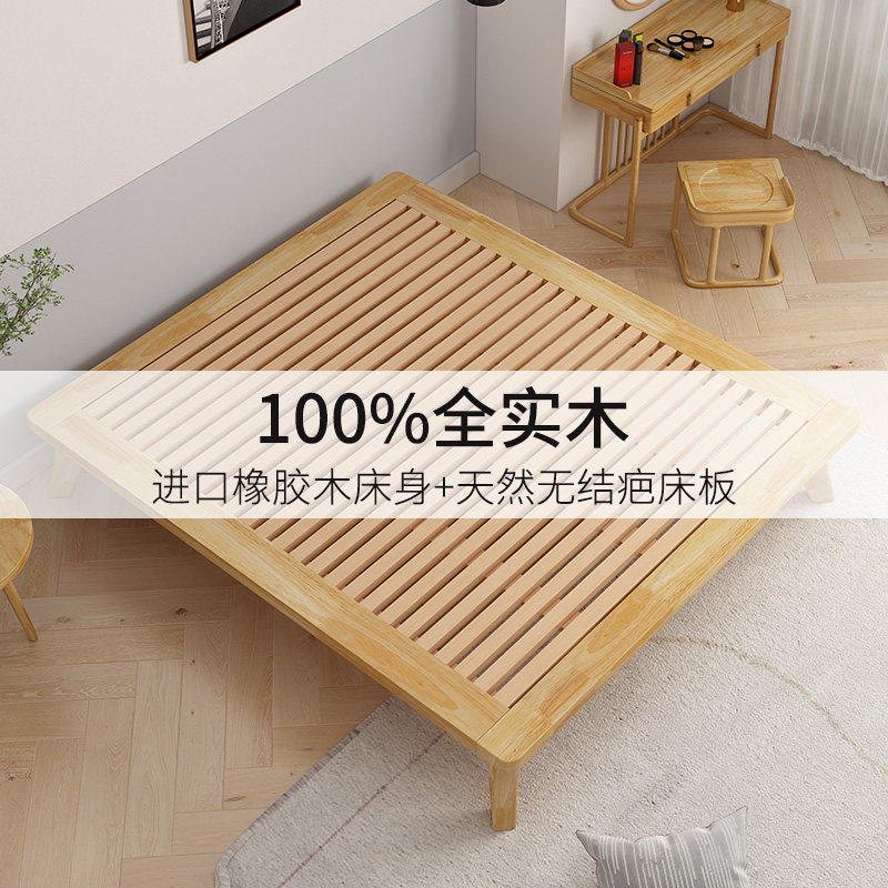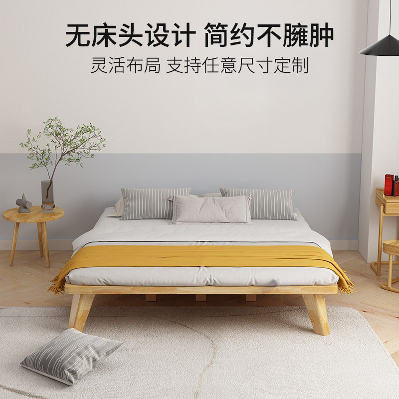 No bedside bed modern minimalist small apartment Japanese-style tatami bed frame 1 5 meters light luxury custom solid wood bed low bed