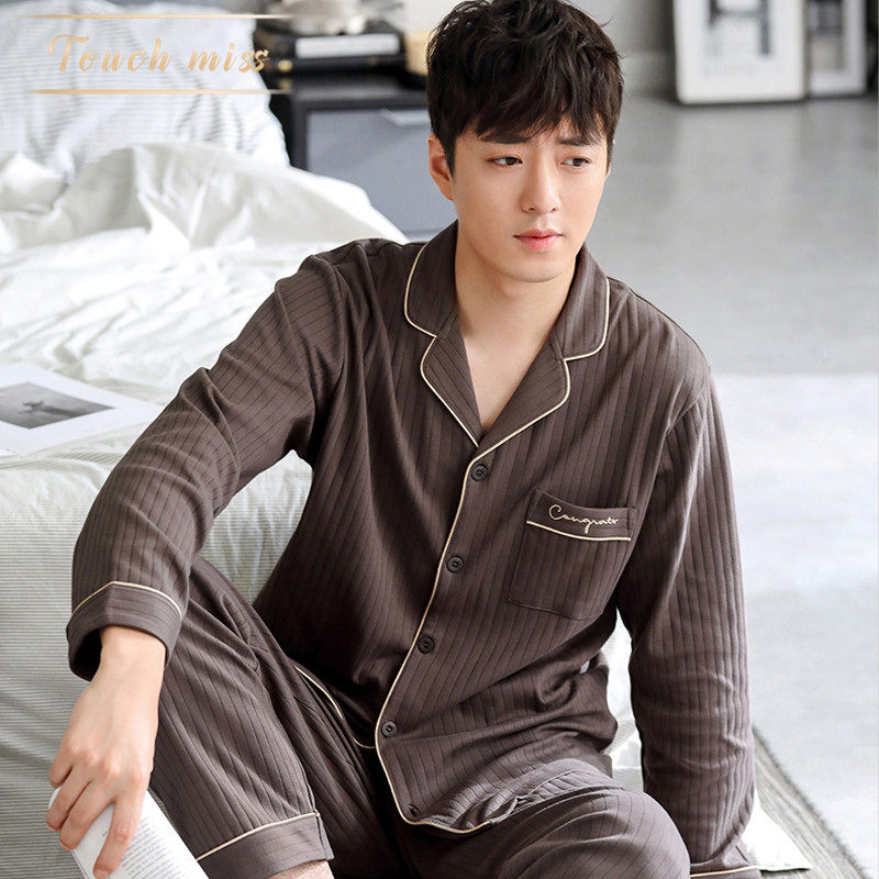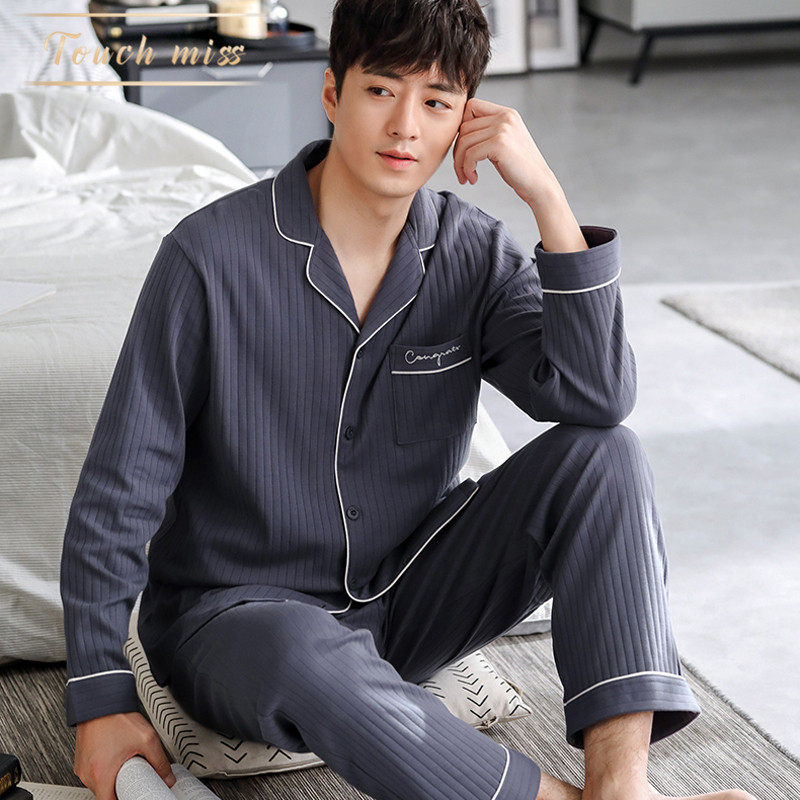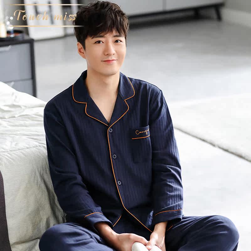 TOUCH MISS2022 new pajamas men's spring and autumn cotton long-sleeved home clothes thin section plus size suit