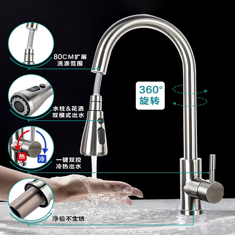 Hanssgrohe kitchen tap telescopic pull-out washing basin dishwashing basin sink hot water and cold water splash rotation full copper