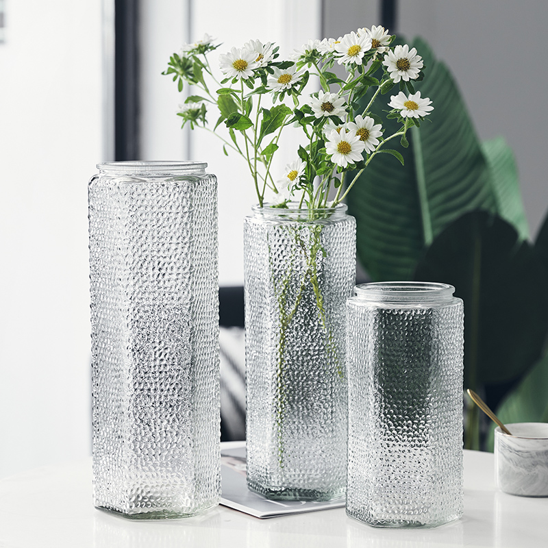 Simple and modern Nordic home decoration glass vase transparent pitting craft hydroponic flowers lucky bamboo vase