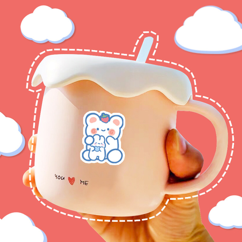 ins cute little bear rabbit expression hand bill stickers line salt tie water cup mobile phone protection shell decoration waterproof without mark