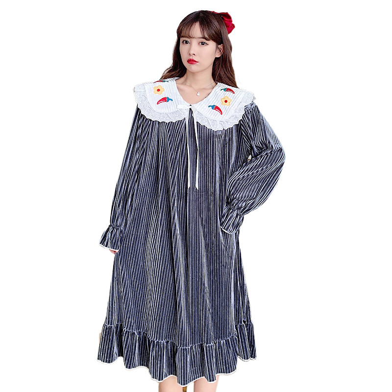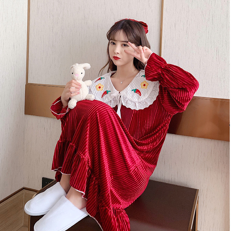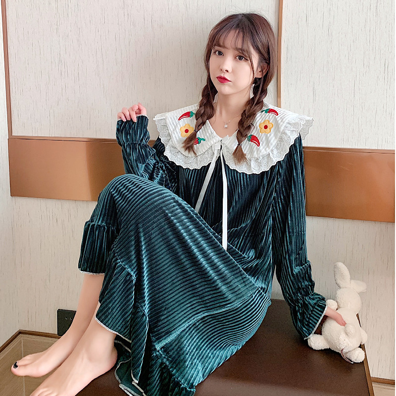 Gold velvet nightdress women's spring and autumn long-sleeved sweet plus fat plus size fat MM200 jin loose long version pajamas women's winter