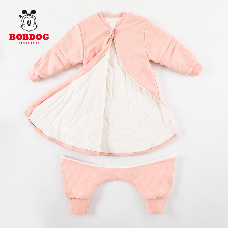 Babu bean baby sleeping bag anti-kick by spring and autumn winter newborn baby children can be removed sleeve and thickened cotton to keep warm