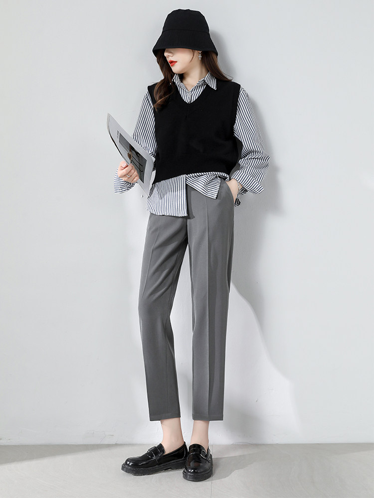 Suit pants women's nine-point pants 2022 autumn black high-waisted straight-leg pants casual commuting slim cigarette pants