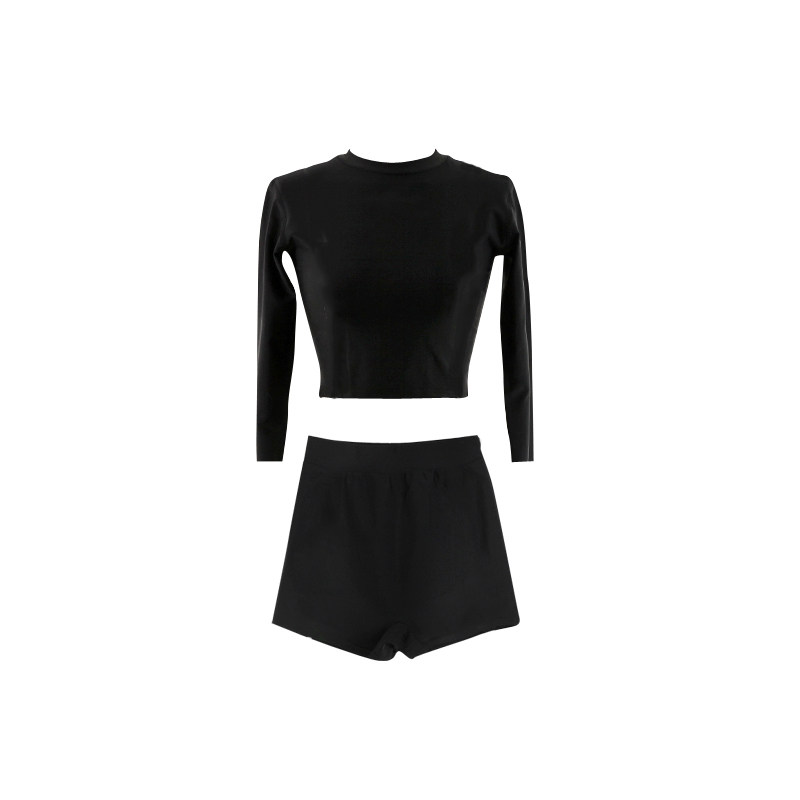 Long sleeves All Black Two sets Long sleeves Two sleeves Long pants half sleeves All black Two sets Long sleeves All black flat angle skirt half sleeves full black flat angle skirt