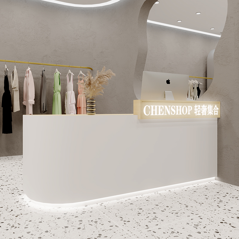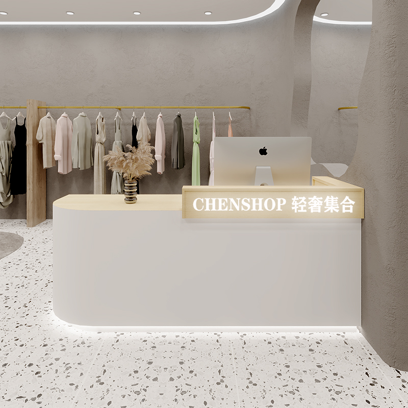 Brief Modern Clothing Shop Bar Counter Desk Collection Silver Counter Women's Clothing Beauty Salon Beauty Salon Small Shop Front Desk Counter