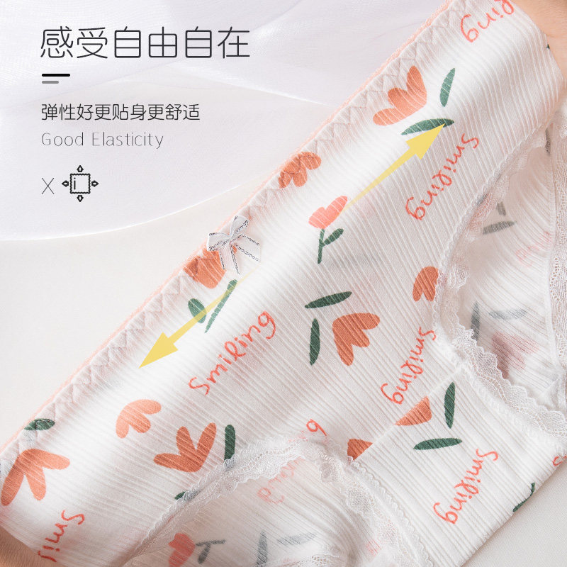 Langsha cotton underwear women's summer cotton antibacterial summer thin breathable seamless ladies mid-waist girl cartoon cute