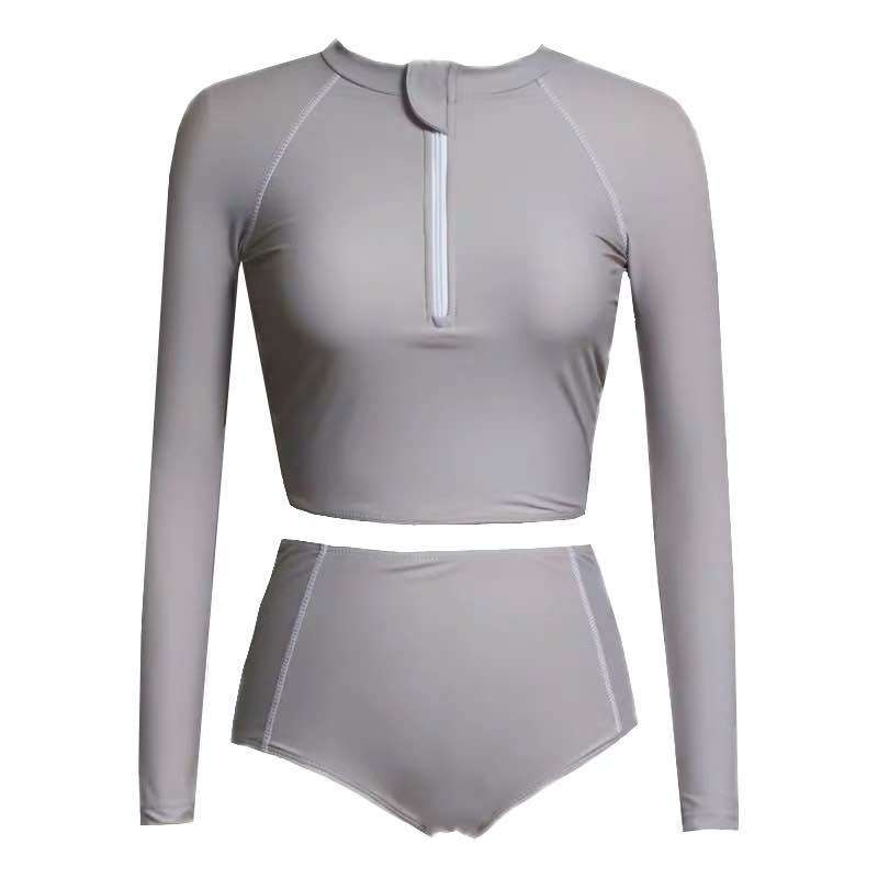 Long sleeved swimsuit female conservative bubble spring split high waist and thin 2022 new sun - protective bras gather swimsuit
