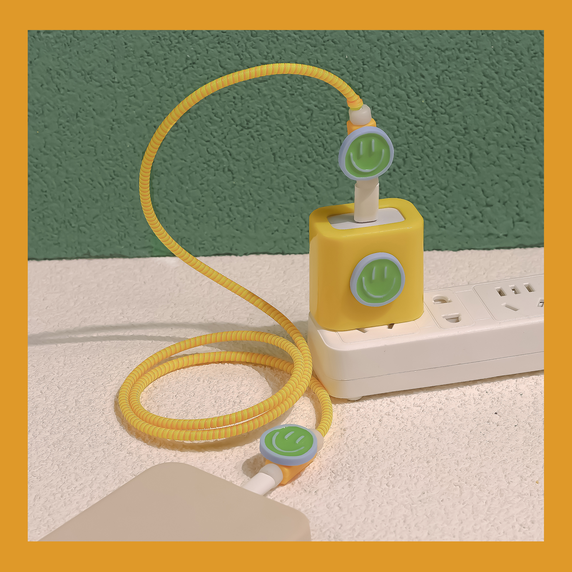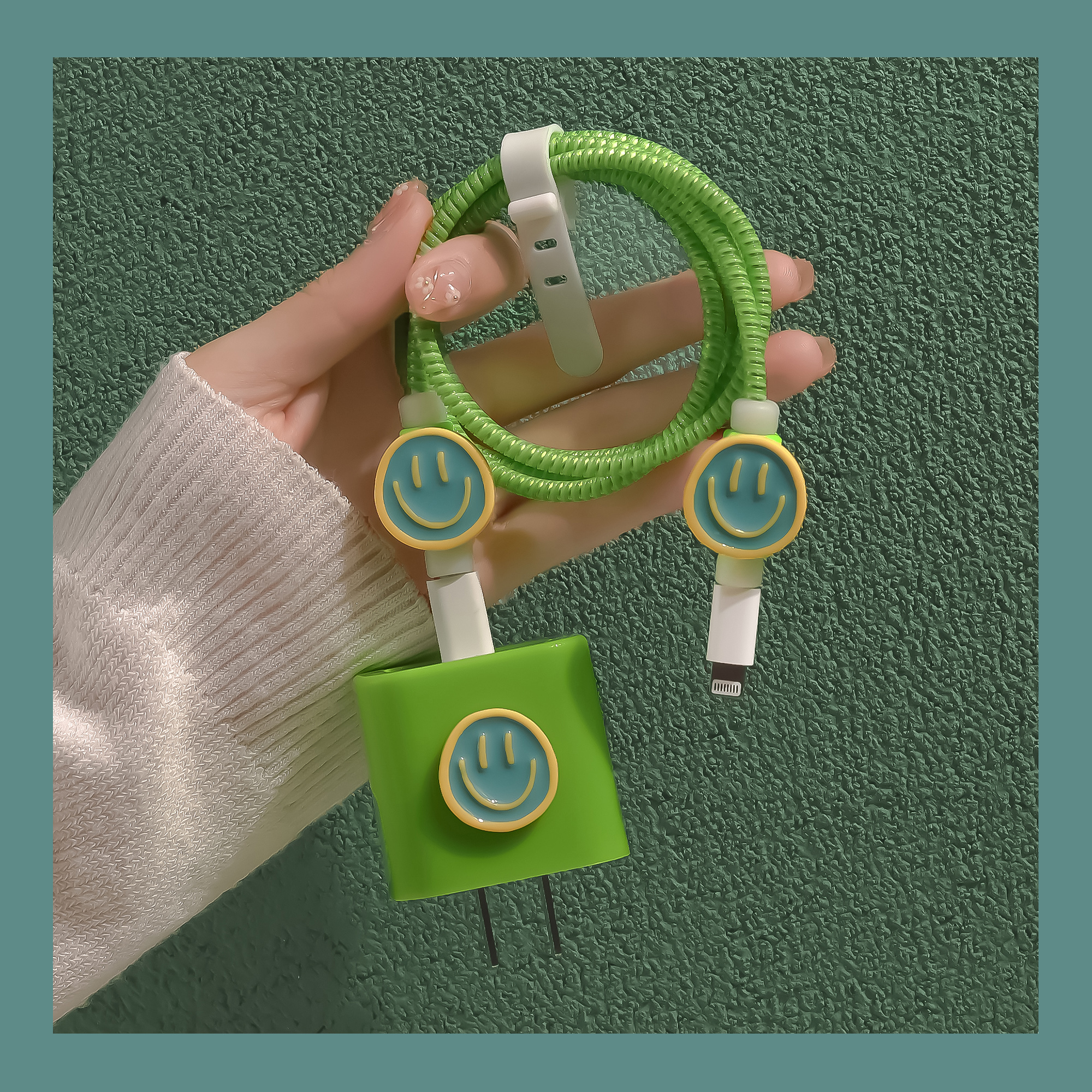 Personality full of original smiley face ~ Apple 12 data line protective sleeve 20W phone charger head 11 bite