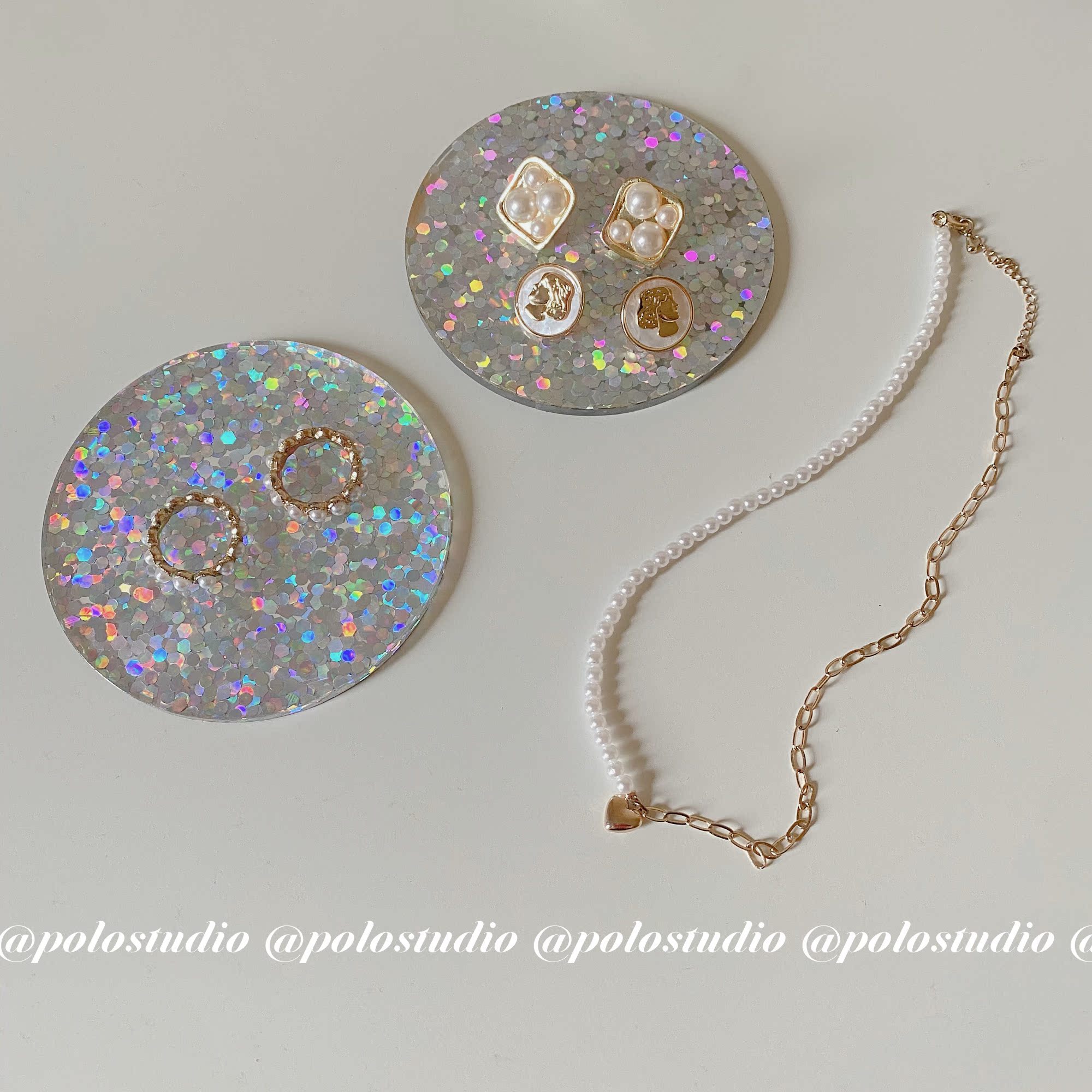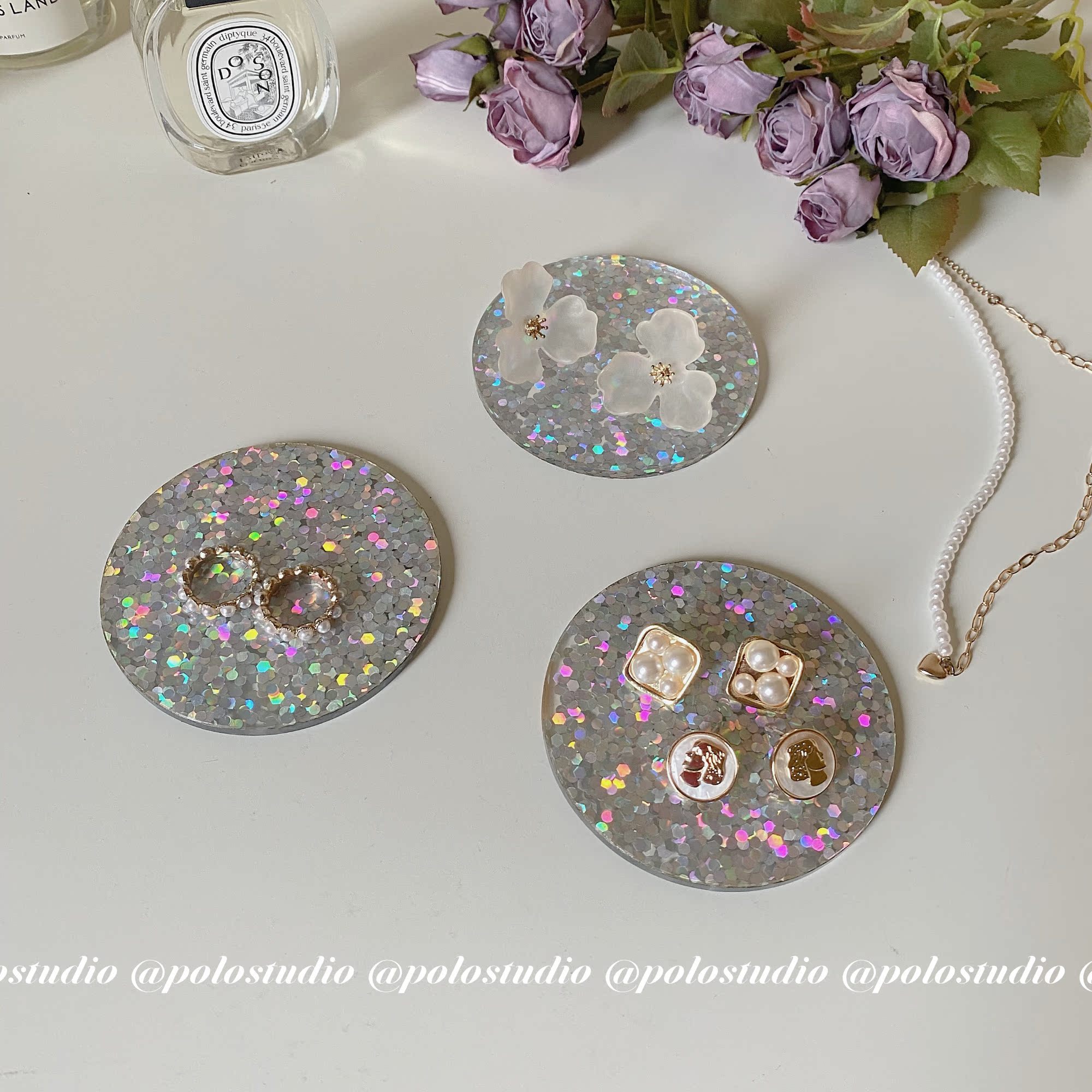 ins wind bright sheet Flash Acrylic Cup Mat Jewelry Necklace Decoration Pendulum round tray Creative home props