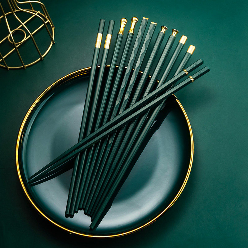 Green Gold Simple Chopsticks 6 Pairs