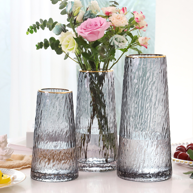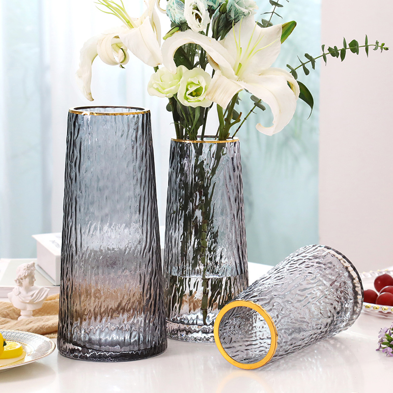 Simple and modern home light luxury hammer writing gold glass vase hydroponic flowers lily living room table decoration decoration