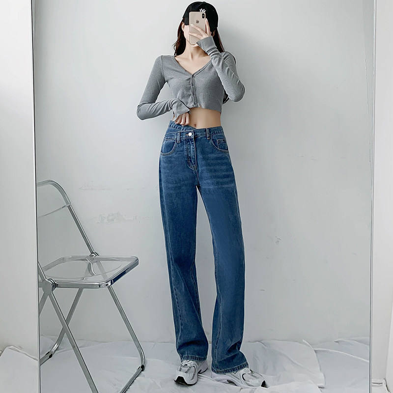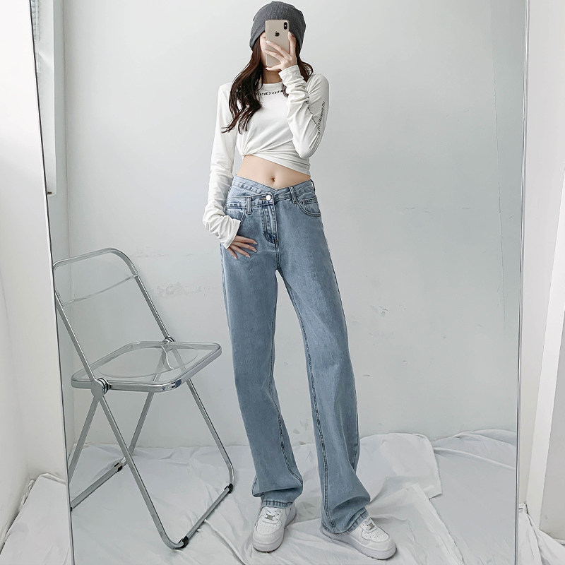 Light-colored jeans women's spring and autumn straight loose autumn clothes 2021 new style thin and mopping high waist wide pants thin section