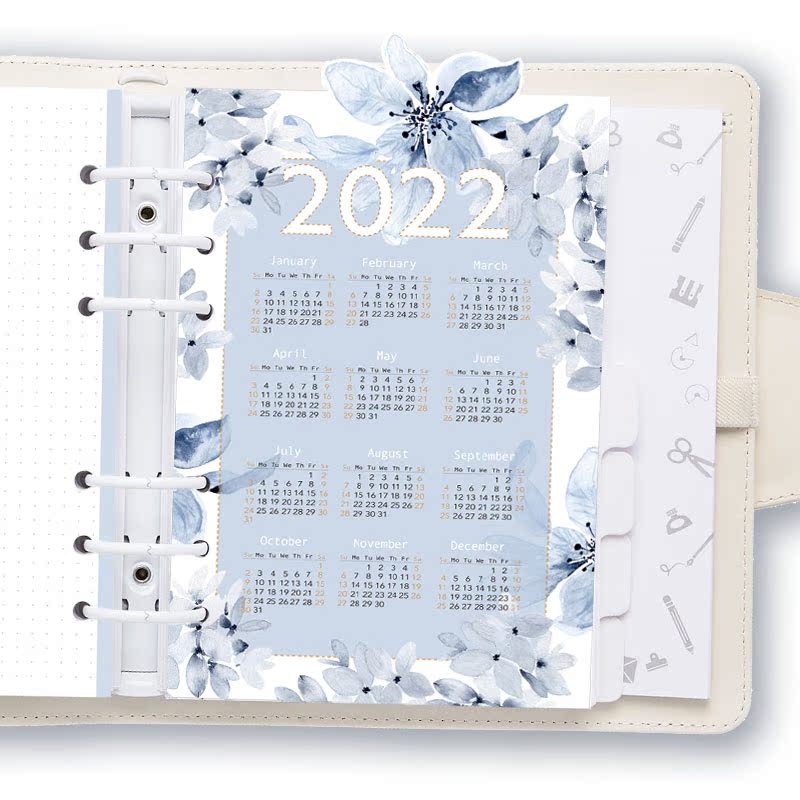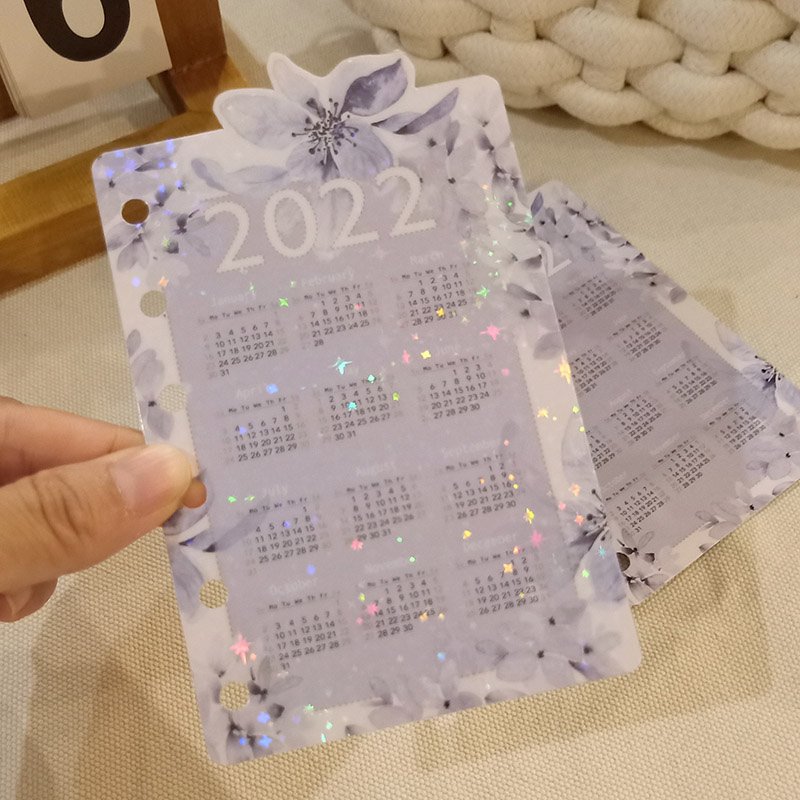 INS WIND BLUE Flowers 2022 Years Calendar Card Separating Sheet Base Plate Loose-leaf Ledger Handledger A5 Chic a6A7m5 new product
