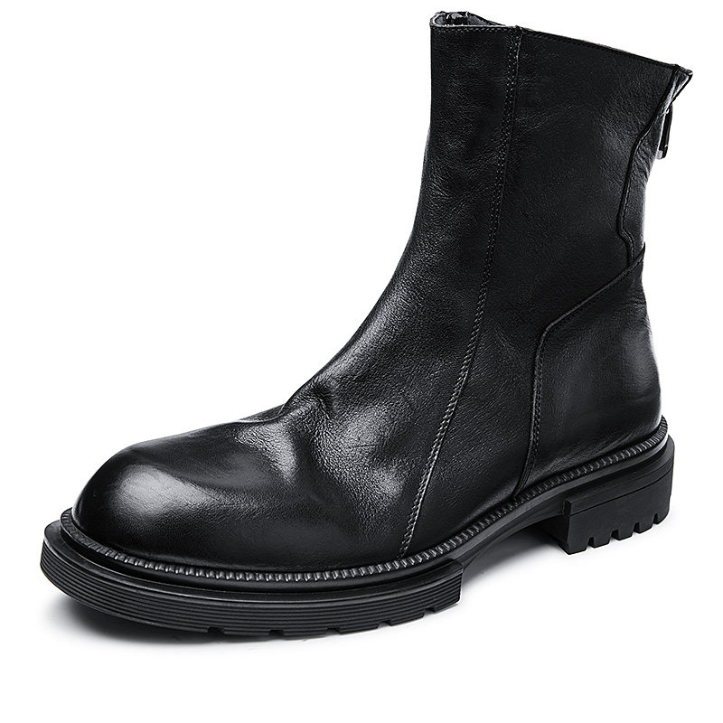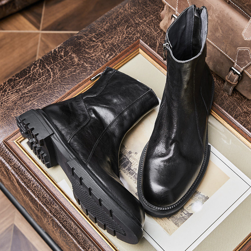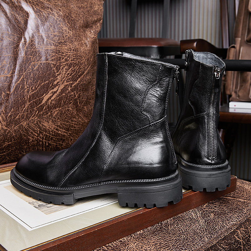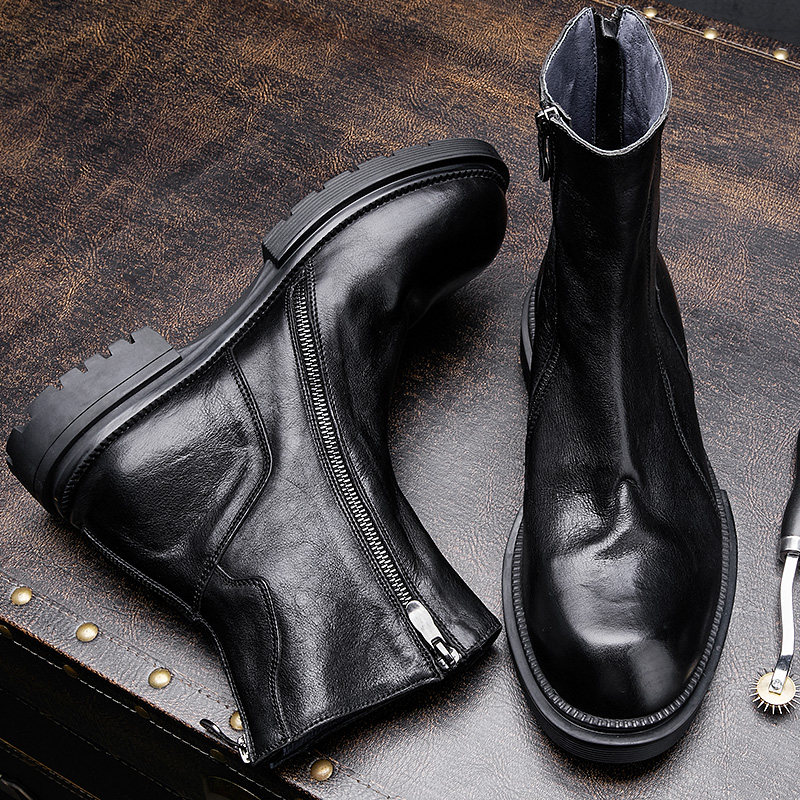 Martin boots men's Korean version of the mid-cut motorcycle boots genuine leather high-top cowhide boots men's mid-cut boots England Chelsea men's boots
