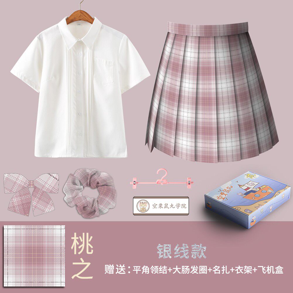 Air chinchilla pill (Peach of Yaoyao) jk original silver line grid skirt girlfriends twin suit genuine pleated skirt