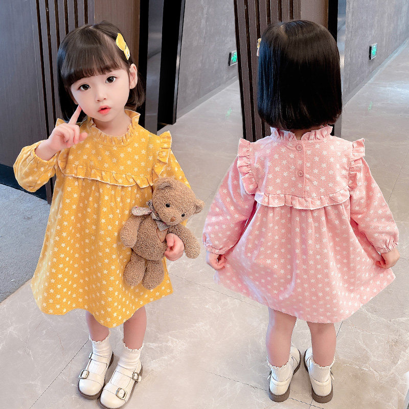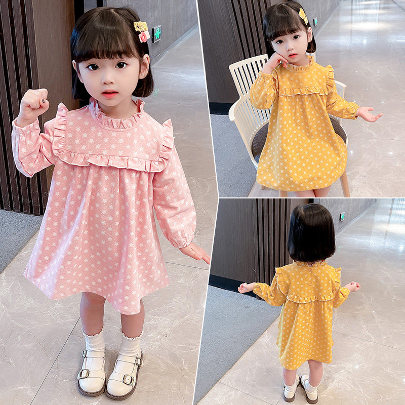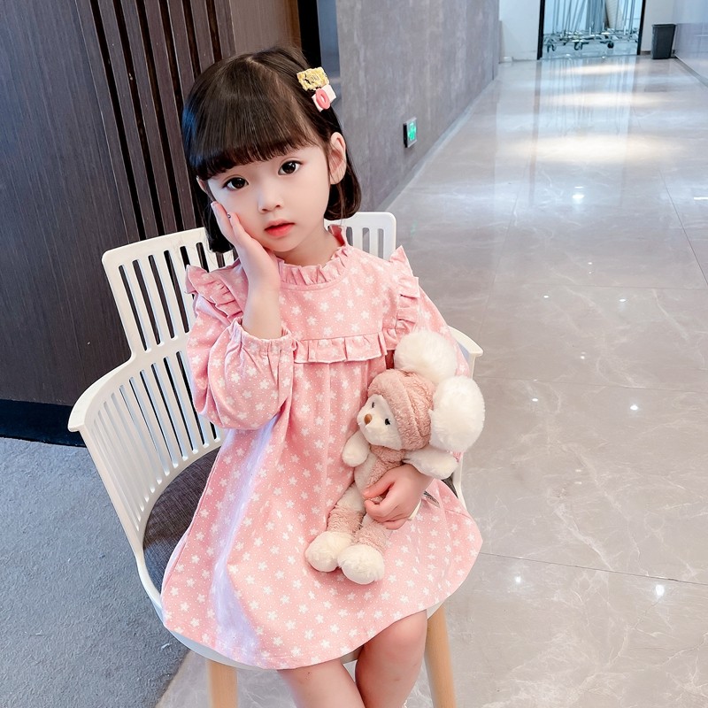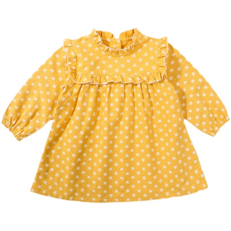 Girl Ocean Dress 2022 Spring Autumn New Grinders Autumn Dress Woman Baby Baby Petals Princess Dress Pure Cotton Long Sleeve Dress