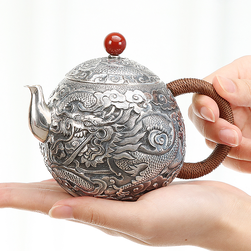 Taian Silver Industry Silver Pure Silver 999 Futarong Egg Bubble Teapot Hand Teapot Office Home Suit Foot Silver Teapot